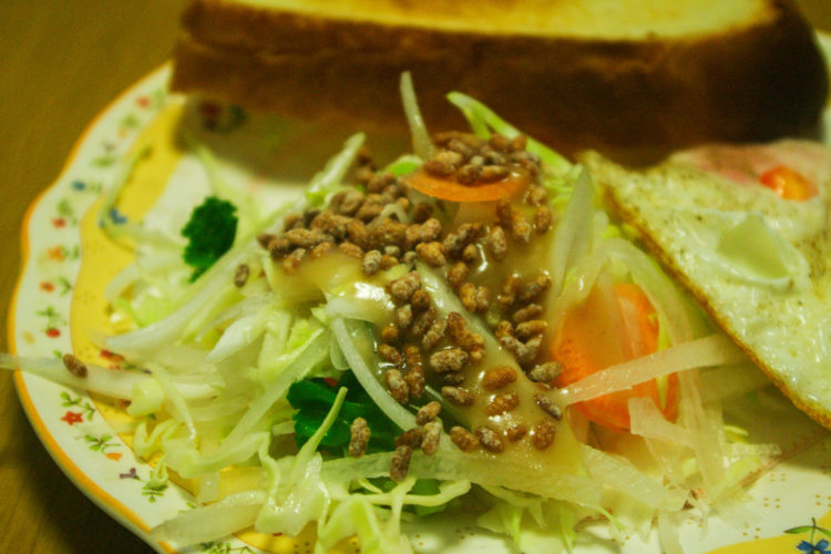 お好みの野菜とドレッシングに発芽玄米グラノーラをあわせると、サクサクの食感とほのかな甘みで新感覚のサラダになります。生野菜でも温野菜でもOK。砂糖が気になる方には無糖がおすすめ。